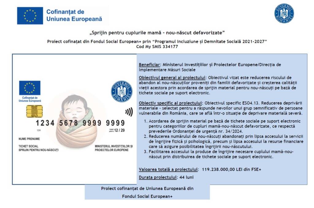 Acordarea de tichete sociale pe suport electronic pentru mamele și nou-născuții din familii vulnerabile, conform Ordonanței de Urgență nr. 34/2024.